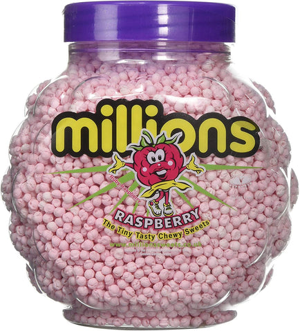 A jar of Raspberry flavoured Millions sweets.